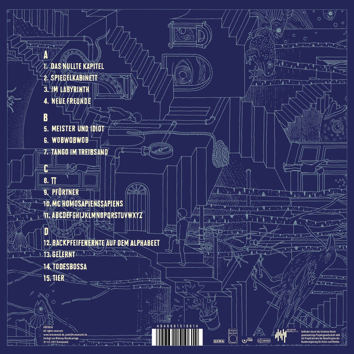 Käptn Peng & Die Tentakel von Delphi sind nach „Expedition ins O“ von 2013 mit ihrem zweiten Band- Studioalbum zurück und es geht darauf laut Peng „wieder um bestimmte Dinge (und auch Gefühle).“ Neben den Tentakel-typischen Sujets wie Wahnsinn, Erleuchtung oder skurrile Monster, wird auf „Das Nullte Kapitel“ unter anderem die Kreiszahl Pi auseinander klamüsert, mit rasierten Igeln in einer irren Traumreise durch Spiegelkabinette gejagt oder die Menschheit nach und nach vom marodierenden Planeten gefegt. Surrealer Text trifft beschwippste Mitsing-Refrains, Metaebene trifft heimliches Augenzwinkern. Erstmals im Themen-Angebot: die klassische Liebes-Schmonzette. Produziert und aufgenommen wurde erneut im bandeigenen Berliner Studio, zusammen mit dem langjährigen Toningenieur der Band Jens Güttes. Galten die Tentakel mit ihrem musikalischen Kuriositätenkabinett aus Bürsten, Töpfen, Fahradklingeln, Betonkübeln, brummelnden Kontrabässen und präparierten Gitarren lange Jahre als die HipHop-Band mit den baufälligsten Instrumenten, haben sich auf der neuen Platte auch ein paar Synthesizerklänge eingeschlichen, die dem maroden Charme des Bandsounds eine abgespacte Note geben. Ordentlich rumpeln tut es natürlich nach wie vor.