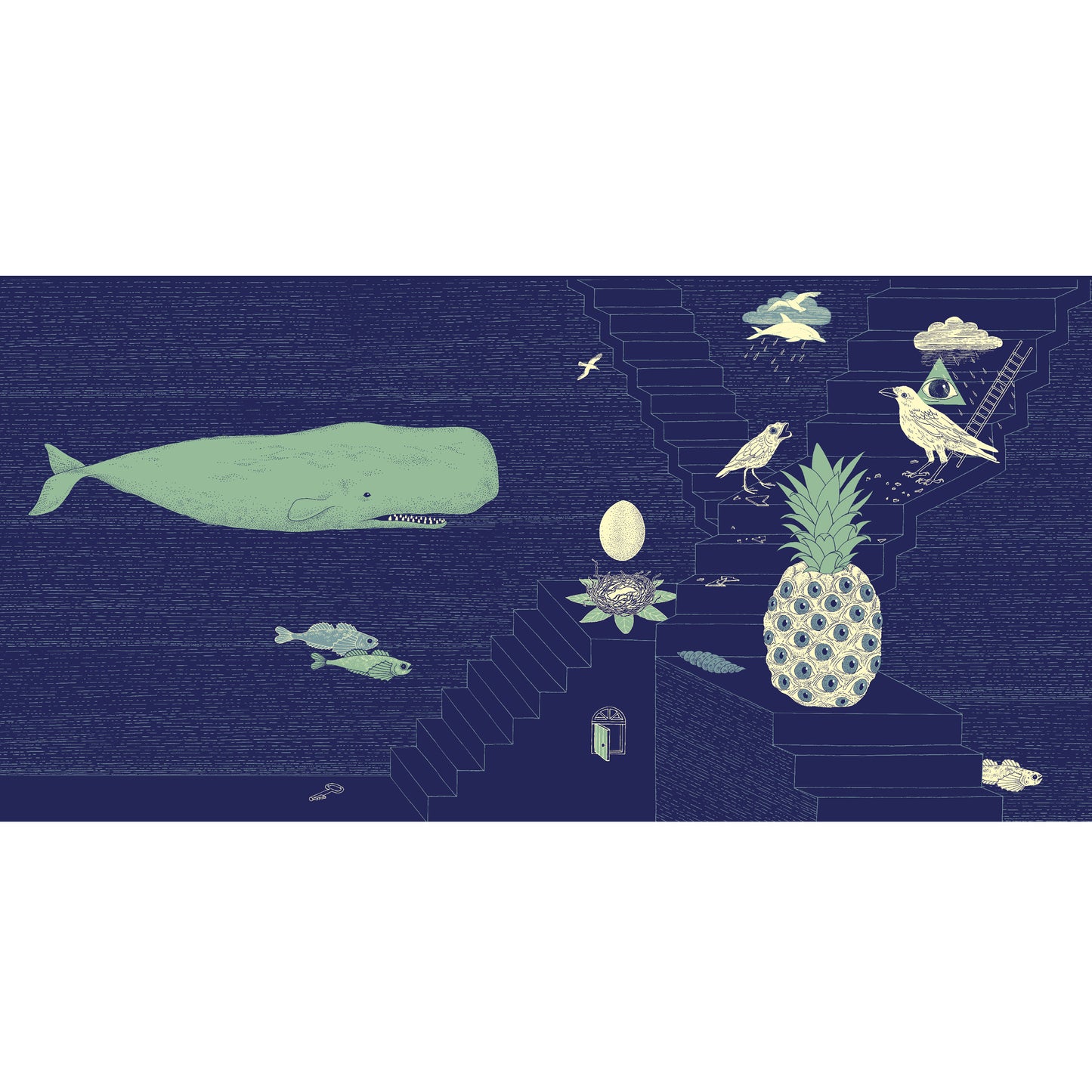 „Das Peng gebar sich selbst im Dichterdarm des Wörterwals. Es wuchs über Tage und Jahre bis es Finger auf den Augen und Ohren an den Füssen trug. Es tanzte durch die Blutbahn des Wals, bis es den Rand seines mächtig pumpenden Herzens erreichte. Dort erblickte es das leise singende Bing, das den Wal am Leben erhielt. Es kroch voran zum Auge des Tieres, nahm allen Mut zusammen und sonderte sich als Träne ab, um mit dem Ozean zu verschmelzen. Der Ozean war eine raue Seele und schleuderte ihn durch haushohe Wellen und reißende Strudel hinab in die Tiefen seiner unermesslichen Weite. Und dort, im schwärzesten Schwarz, erwartete ihn das Monster. Es griff mit Saugnapf besetzten Krakenarmen nach ihm und zog ihn sanft in seinen Schoß. Seit diesem Tag suchen gemeinsam nach dem Verfasser des nullten Kapitels.“ (aus: „Das Nullte Kapitel“)